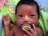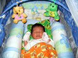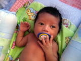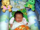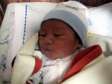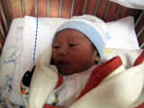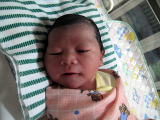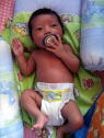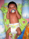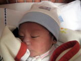 | 1月23日 はだかんぼうの海君。まだまだおむつが大きく見えますね。 |